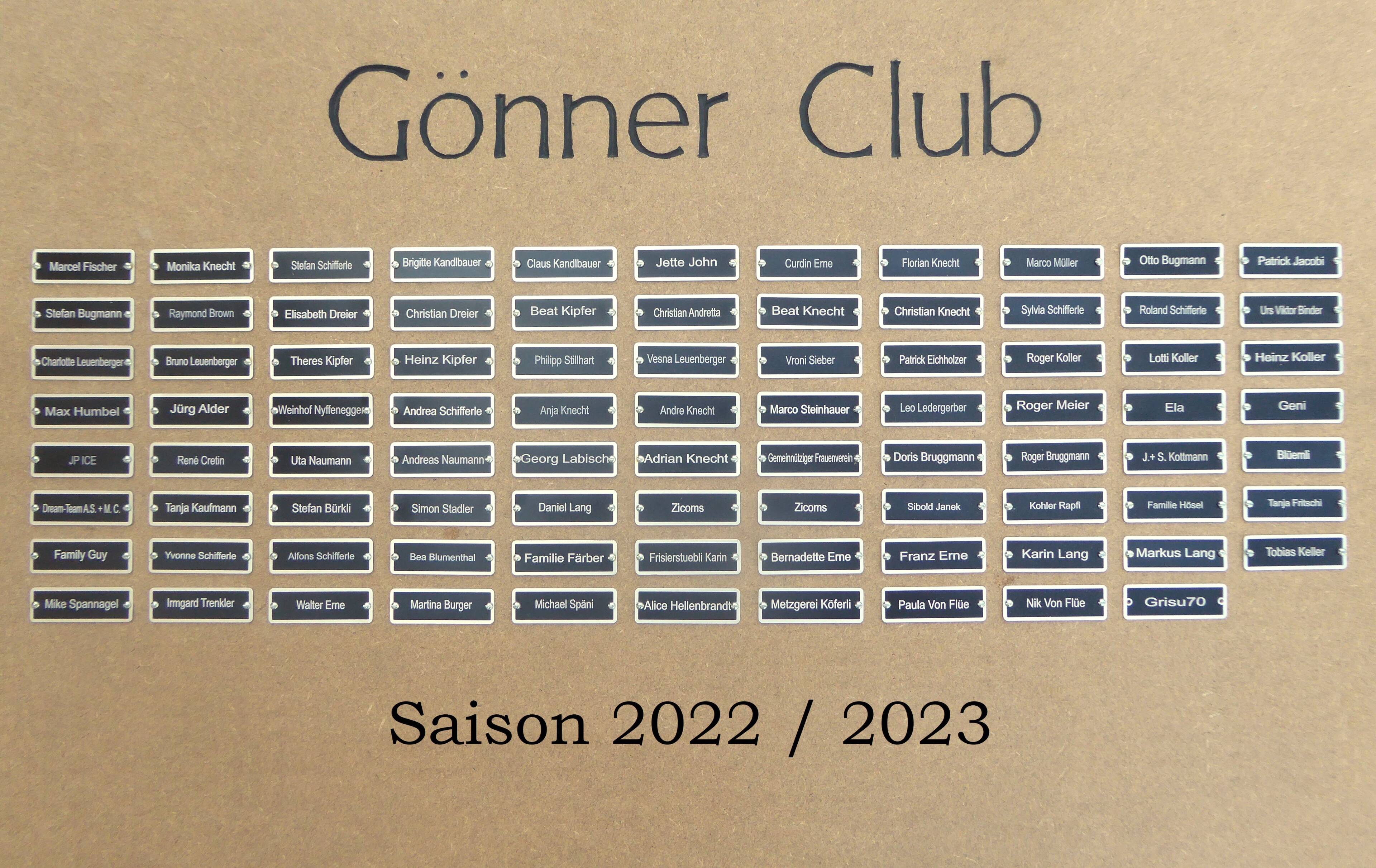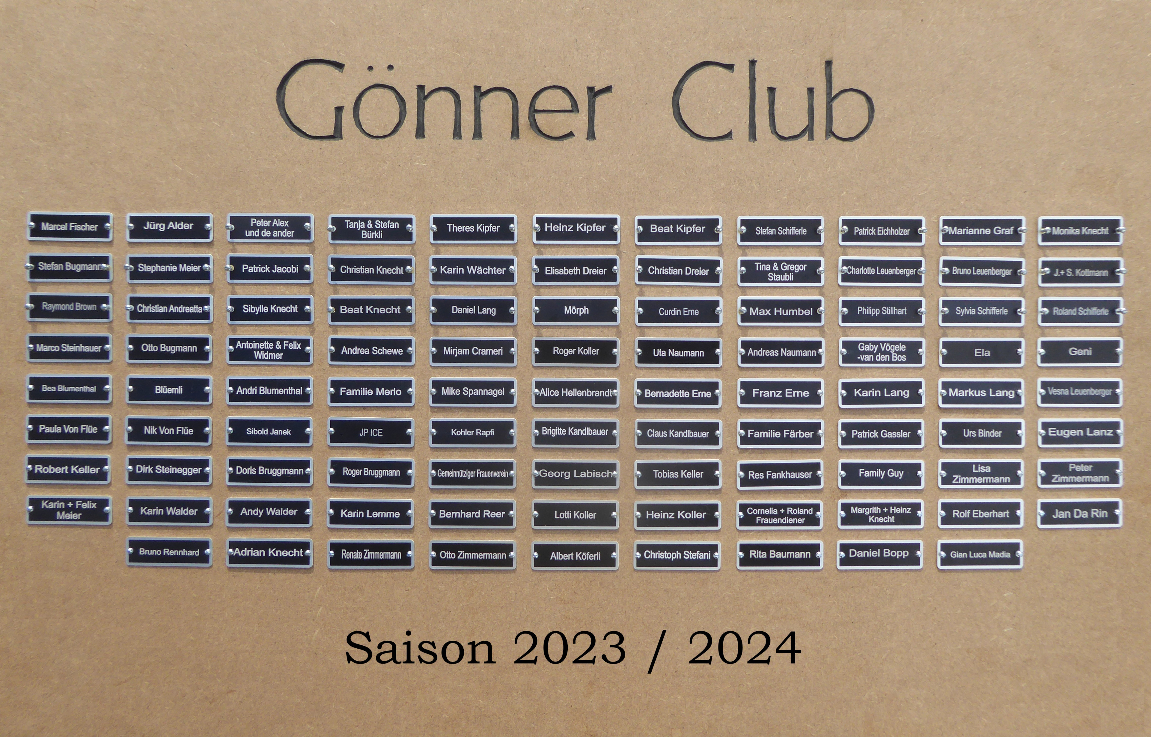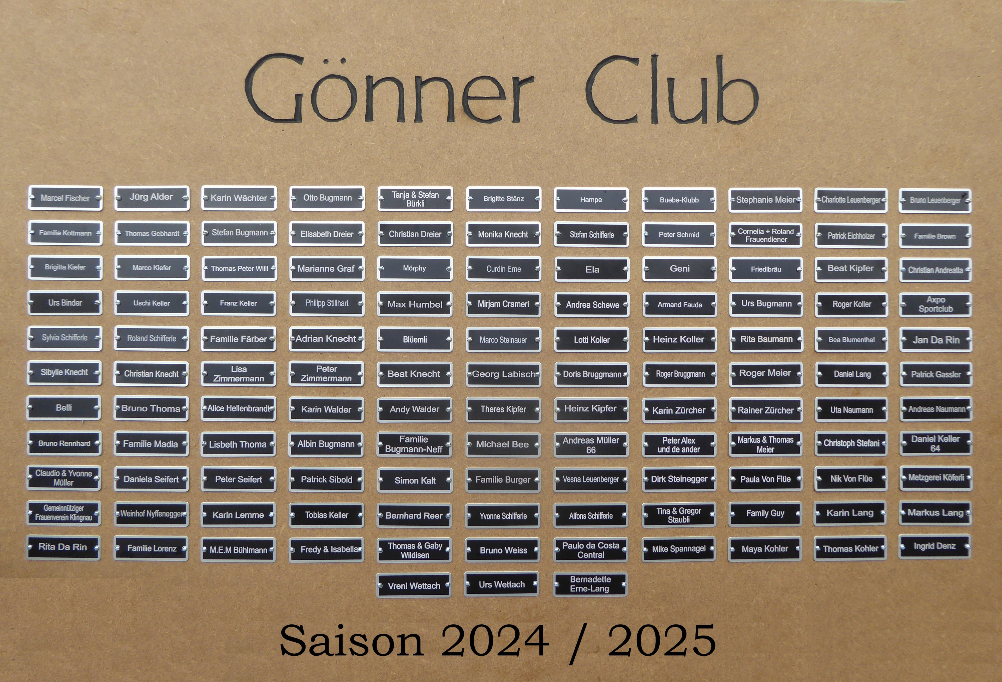Anschliessend platzieren wir ein graviertes Schild mit deinem Namen auf der Gönnertafel im Chalet. Dort werden alle Gönner der Reihe nach aufgeführt.